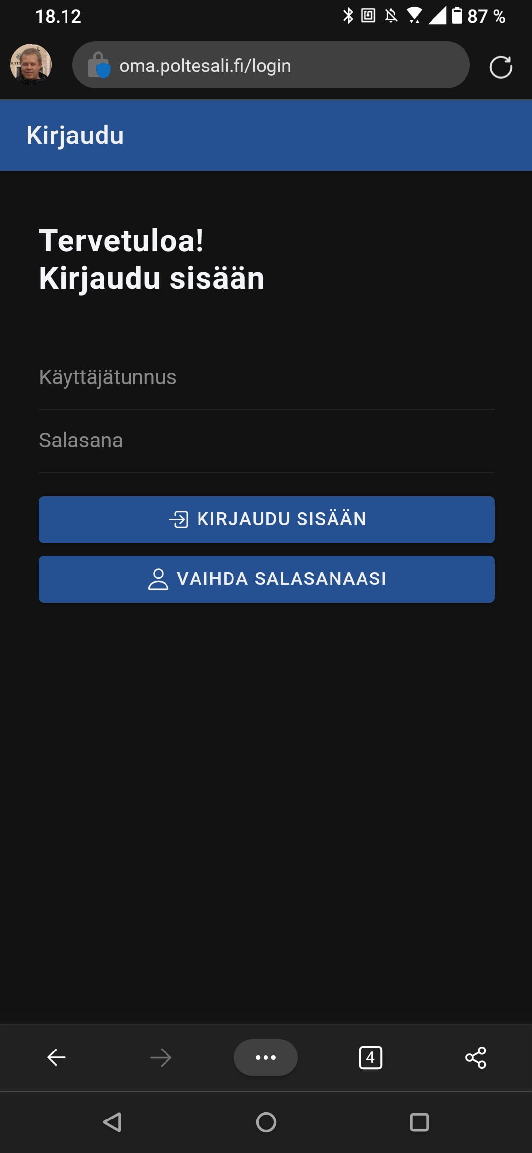 Mene osoitteeseen oma.poltesali.fi millä tahansa selailmella (PC, Mac, Android, iPhone). Klikkaa painiketta KIRJAUDU SISÄÄN.